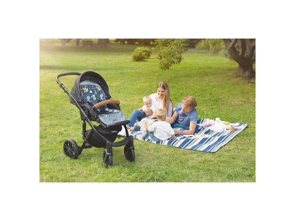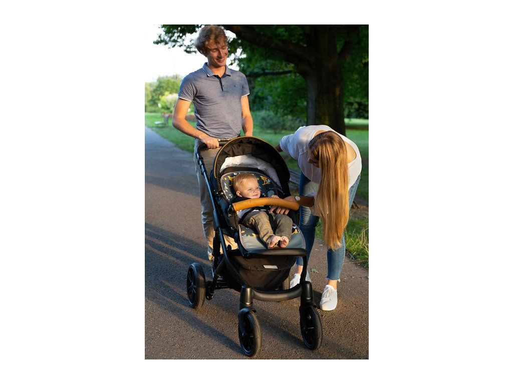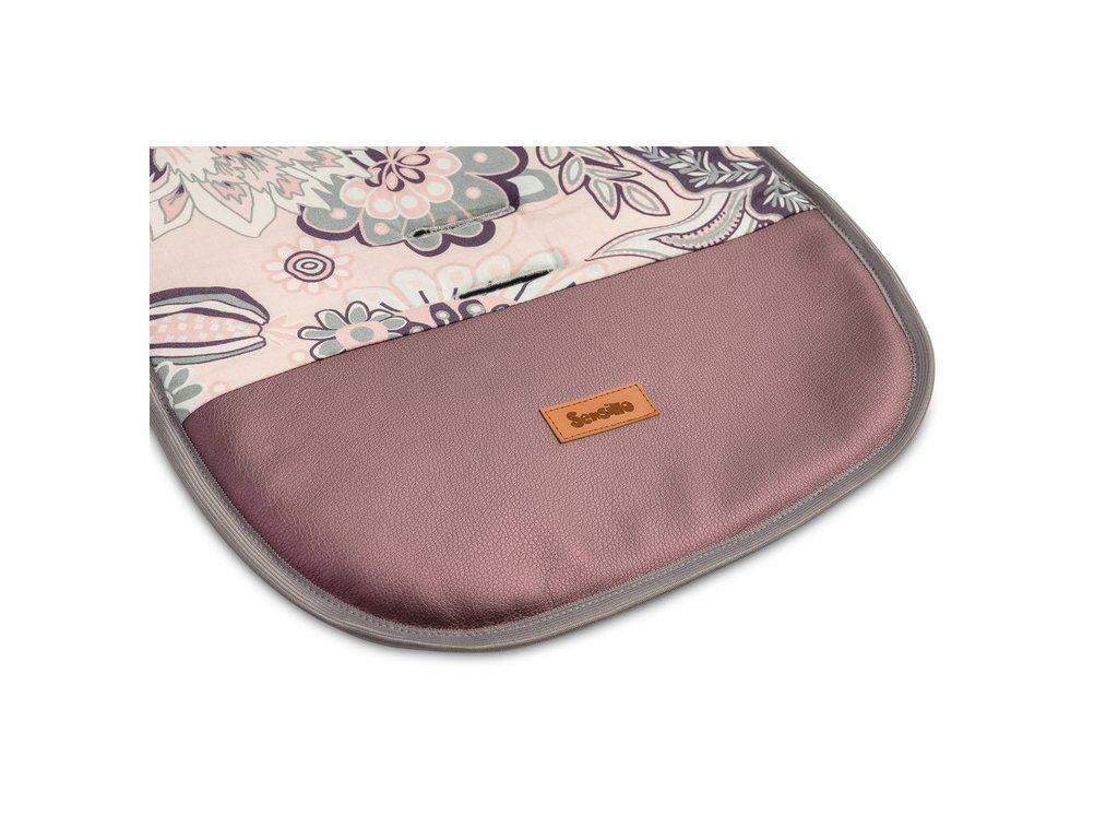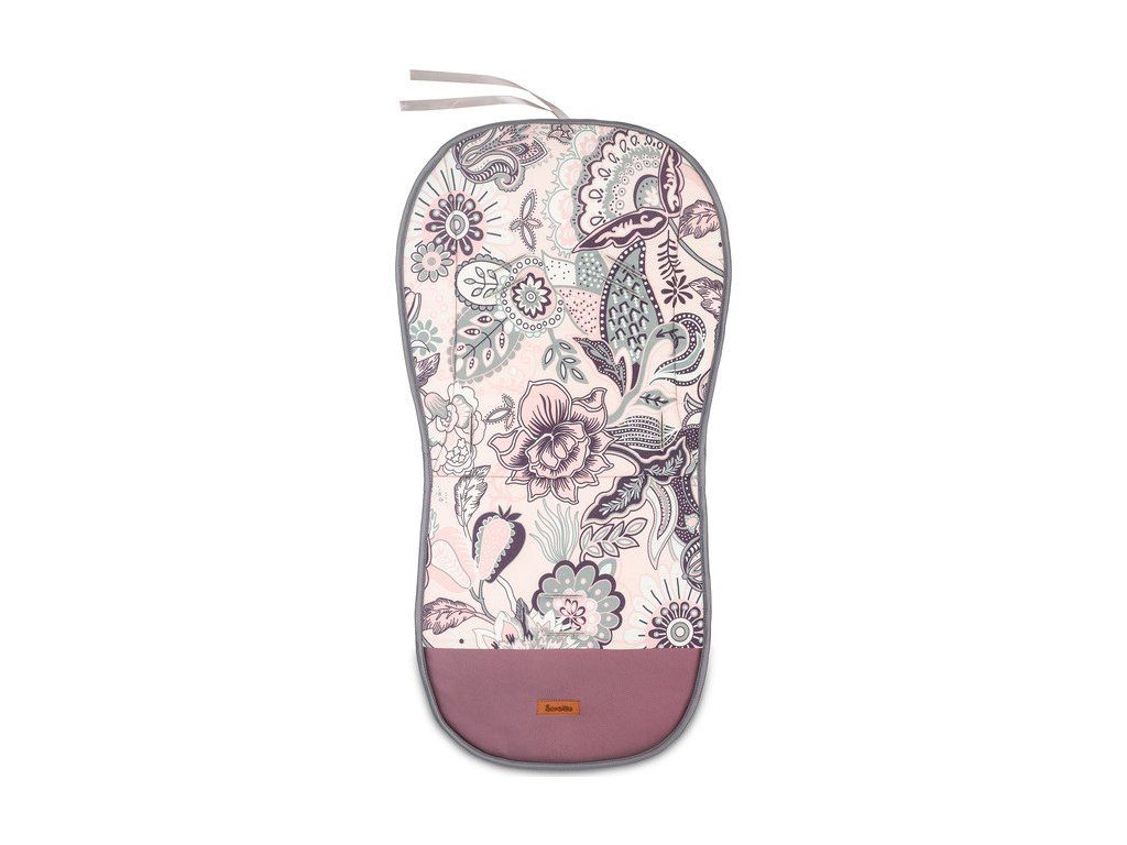 Táto univerzálna vložka do kočíka je obojstranná a vodotesná. Na jednej strane je kvalitná hladká bavlna s módnym vzorom a na druhej strane jednofarebná bavlna s vafľovou štruktúrou. Na oboch stranách v spodnej časti je pridaná ľahko čistiteľná farebná ekokoža. Podšívka pomáha udržiavať vnútro kočíka čisté a zvyšuje pohodlie pri cestovaní. Navyše má otvory na bezpečnostné pásy a stuhu na pripevnenie vankúša k súprave.