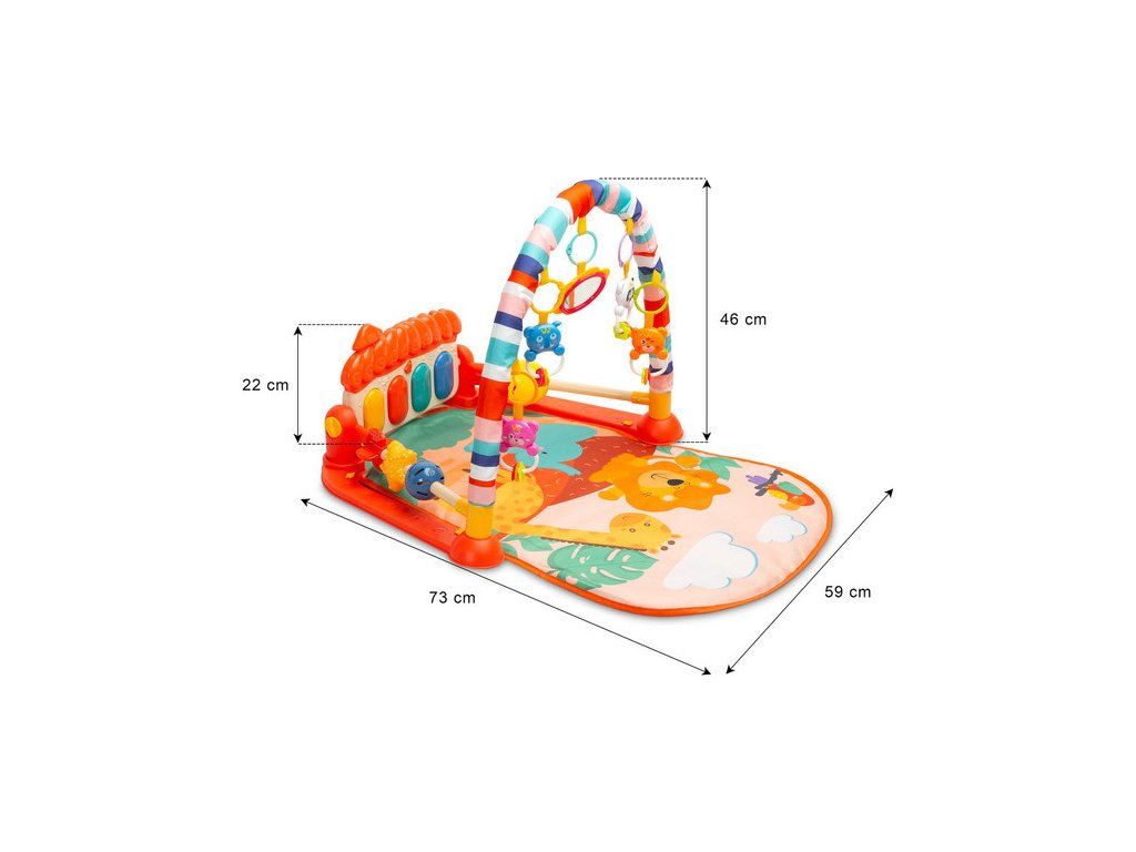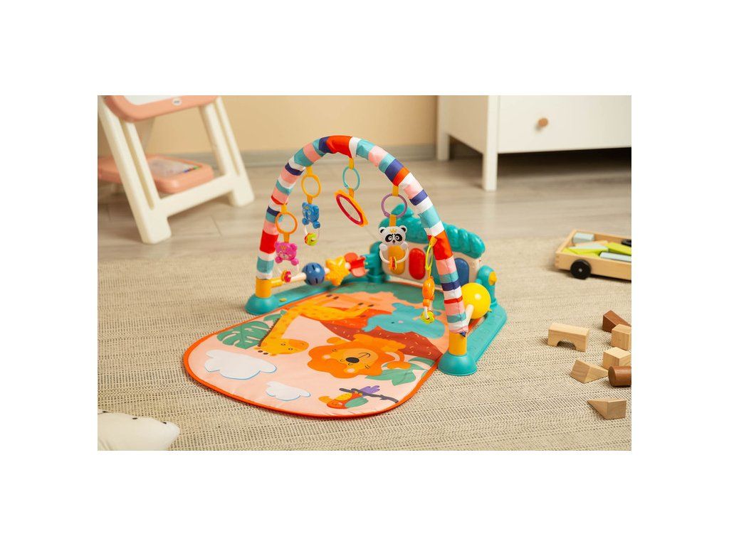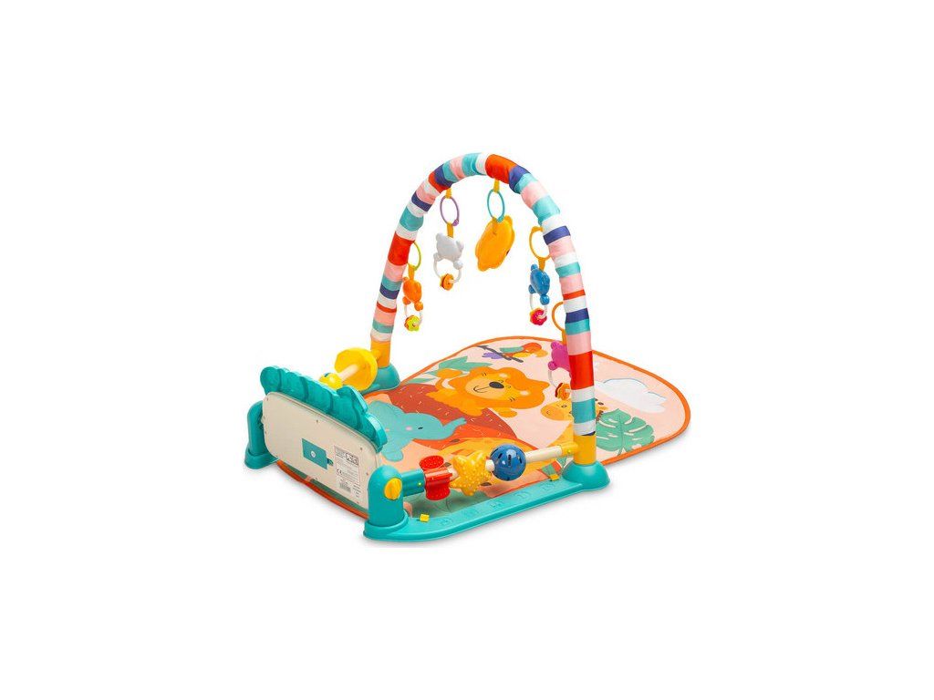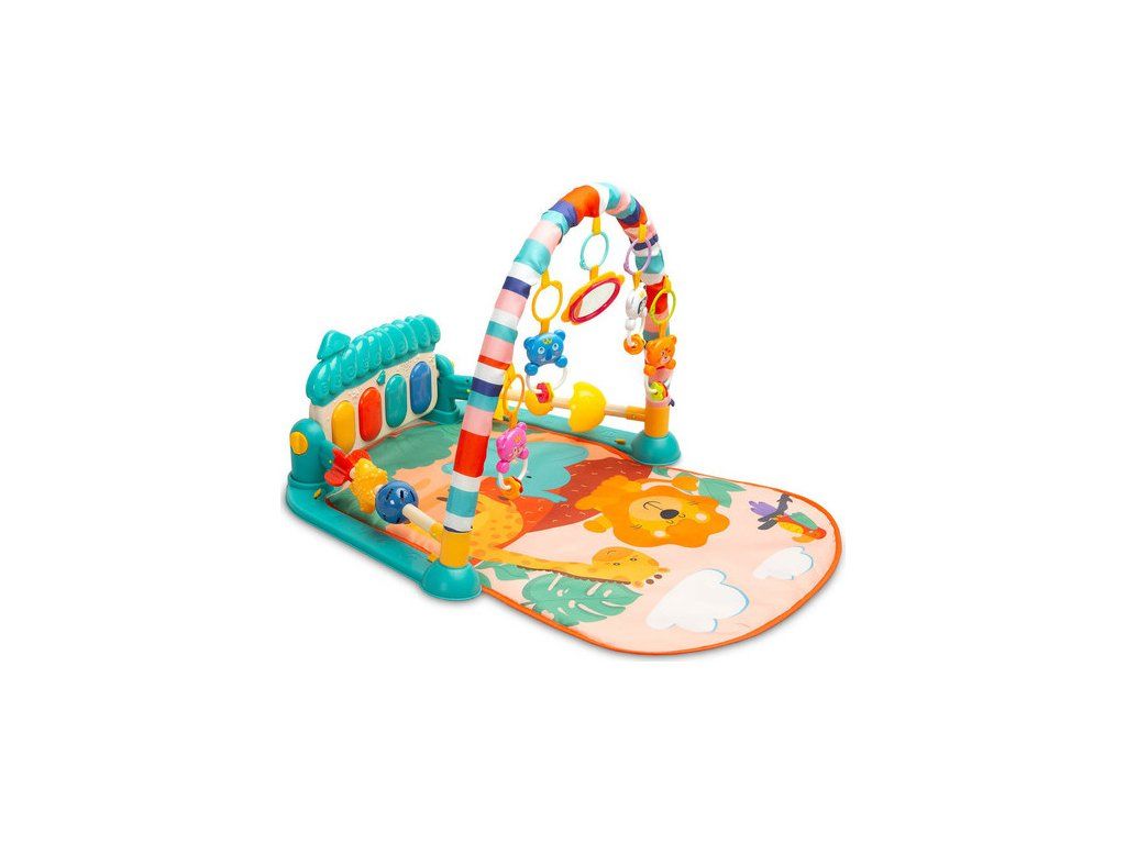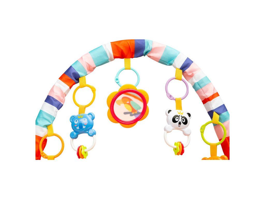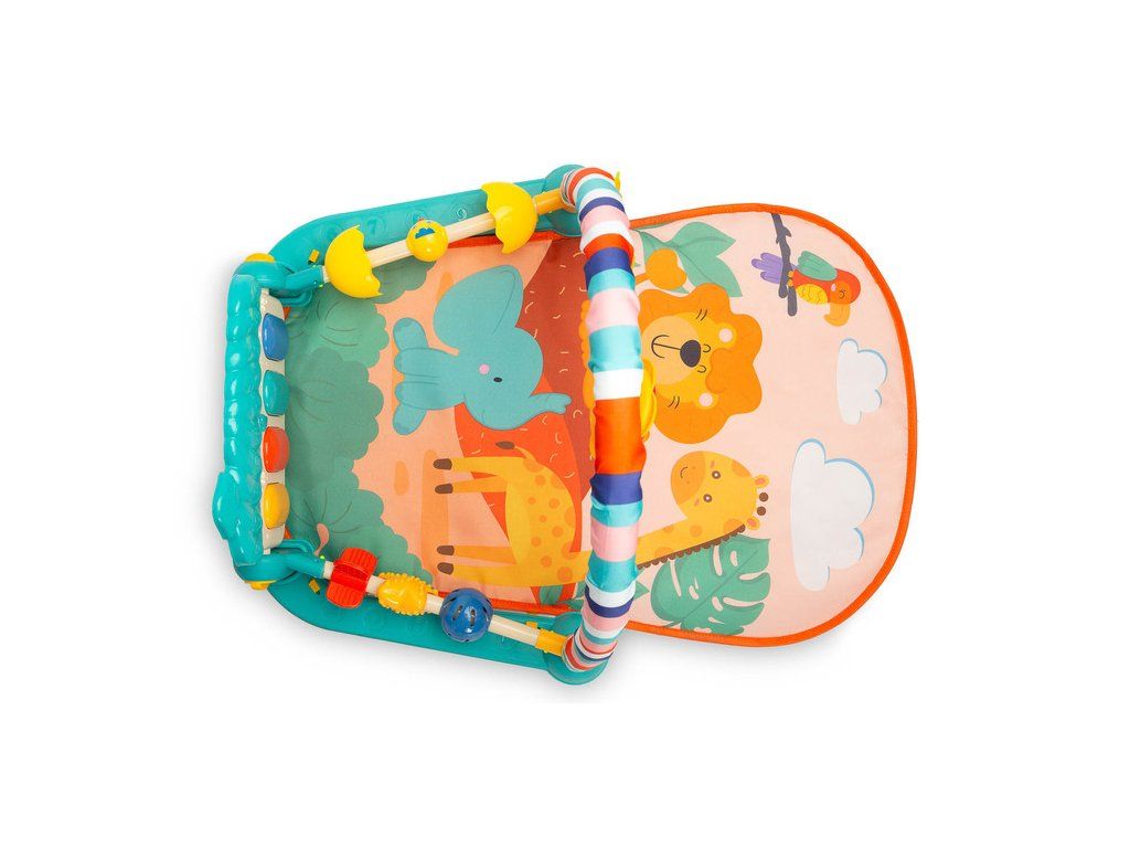 Edukačná podložka ZOO je produkt určený pre deti, ktoré sa rady hrajú poležiačky. Podložka je vybavená čelenkou, na ktorej visia hrkálky v tvare priateľských zvieratiek a zrkadlom, ktoré poteší bábätko. Multimediálny panel s veľkými tlačidlami spríjemní hranie a zmyslové hračky namontované po stranách pomôžu rozvoju dieťaťa. Hračka je vhodná pre deti od prvých okamihov života.