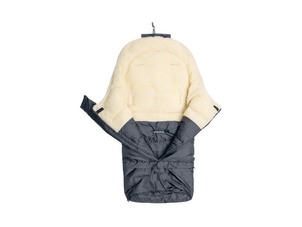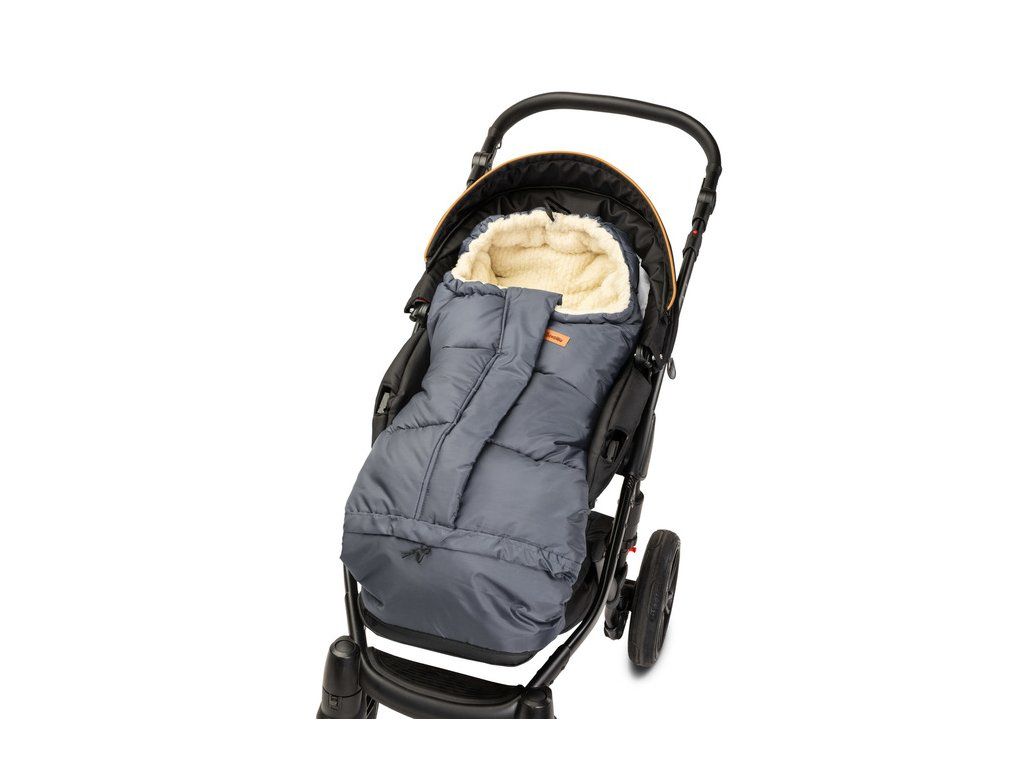 Prešívaná vlnená - grafitová zimná pohovka Sensillo 3v1 Kombi s nastaviteľnou dĺžkou od 80 do 100 cm, ideálna do hlbokého kočíka, autosedačky alebo saní. Vonkajšia vrstva poskytuje ochranu proti vlhkosti a vetru. Jedinečný tepelný komfort je výsledkom trojvrstvovej konštrukcie so zateplením a mäkkého, vlneného vnútra. Má otvory pre päťbodové bezpečnostné pásy, ktoré sa nachádzajú vo väčšine kočíkov a hlbokých kočíkov.