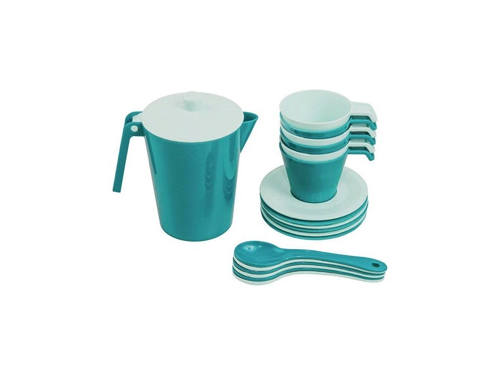 Kávový set ze série Toys in Trends ve tyrkysové, mléčné mátové a bílé je nenahraditelnou hračkou pro každé dítě, které si rádo hraje na role. Skvěle se hodí na intimní čajový dýchánek pro 6 osob a malá hostitelka se zde zábavnou formou naučí pravidla etikety a prostírání.